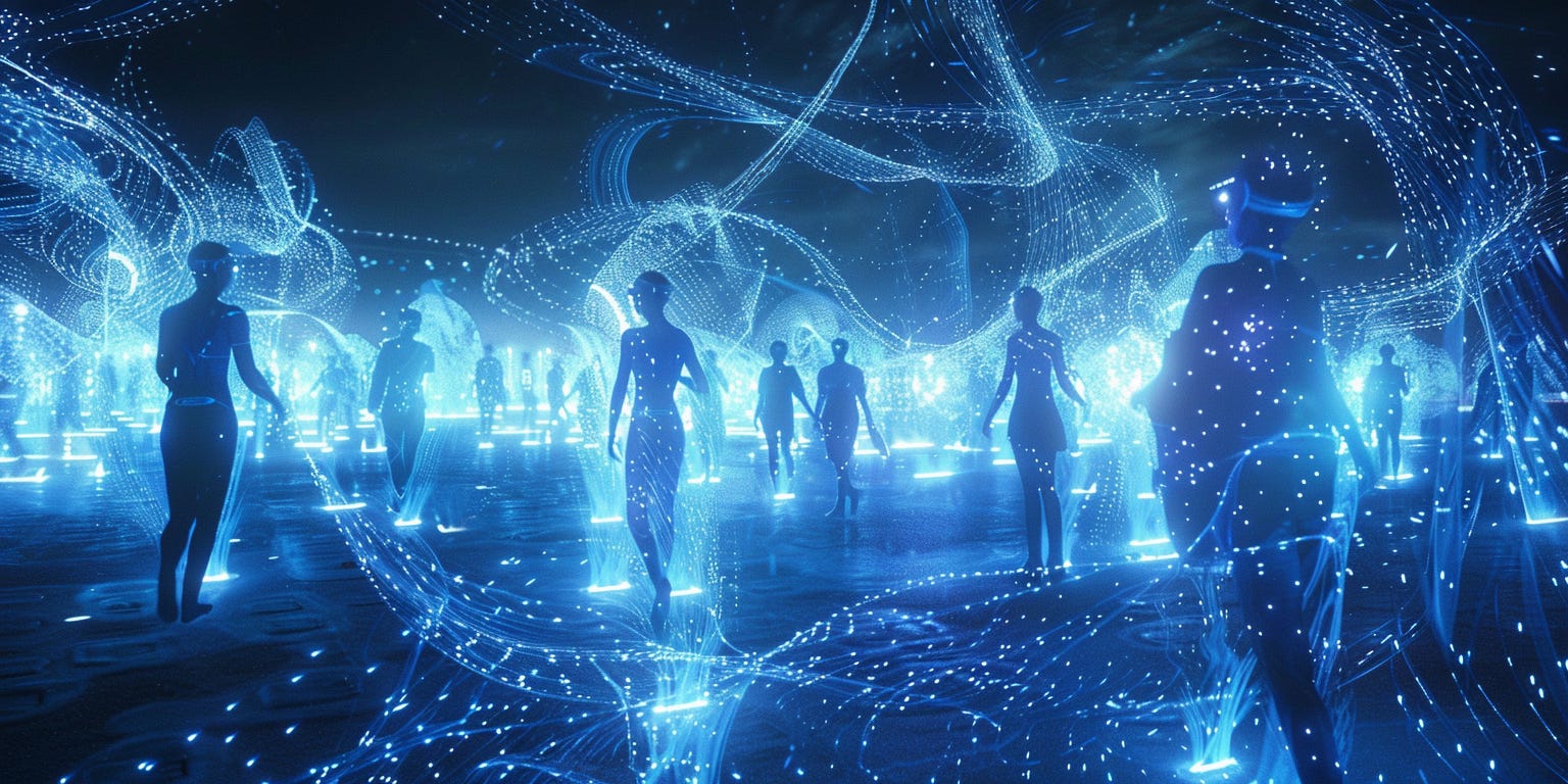 Ansel tilted his arms and glided down to the surface of this glowing blue orb. When he landed it was as if he was standing on a mild electrical current, not enough to shock, just pure energy flowing gently through his body. The people there were all humanoid in form but bioluminescent, with bright halos of light dancing off of their skin.